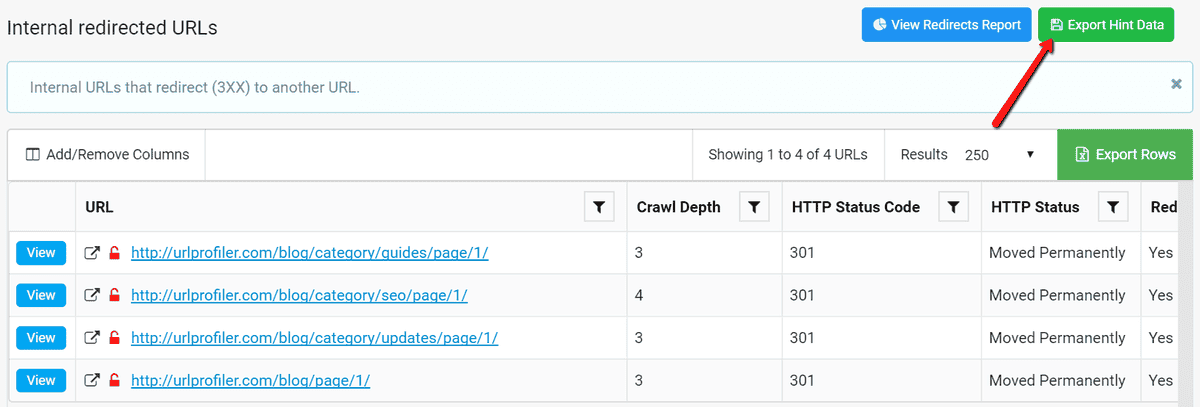 - Since we needed to add another button, we also figured you'd appreciate a massive UI change. If you look to the top right, you'll now find Filtered URL Lists, Bulk Exports, Printable Reports, Crawl Maps and All Hints.