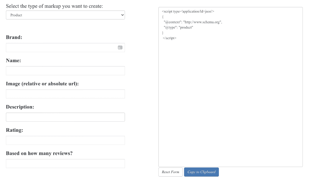 - Internet Marketing Ninja’s Product Rich Snippet Schema Generator