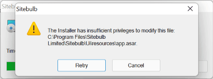 Annoyingly, this also means that you can't even uninstall Sitebulb from your machine (because it won't let the installer remove the 'infected' file), and you'll see this error if you try to uninstall OR install a newer version: