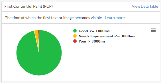 - 92% of users had a LCP time under 2.5 seconds