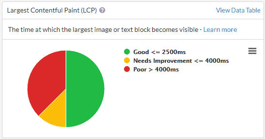 - 6% of users had a LCP time between 2.5 seconds and 4.0 seconds