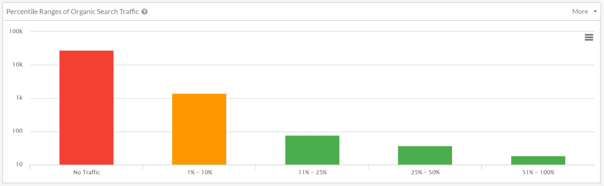 In an ideal world, every indexable page on your website is deemed sufficiently valuable by Google that they are happy to send organic search traffic to it. But that is rarely the case, and in fact you could have thousands of pages that don’t receive any organic traffic.