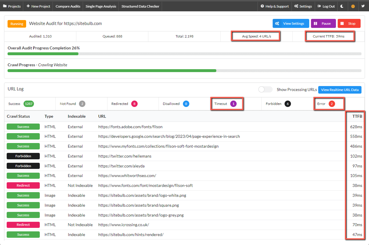 When crawling bigger sites, you typically also want to crawl faster, because the audit will take a lot longer to complete. It is straightforward to increase the speed that Sitebulb will try to crawl. Go to Crawler Settings when setting up the audit, and adjust the 'Crawler' options.
